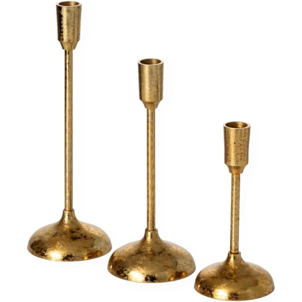 Brushed Gold Taper Candle Holder Set of 3