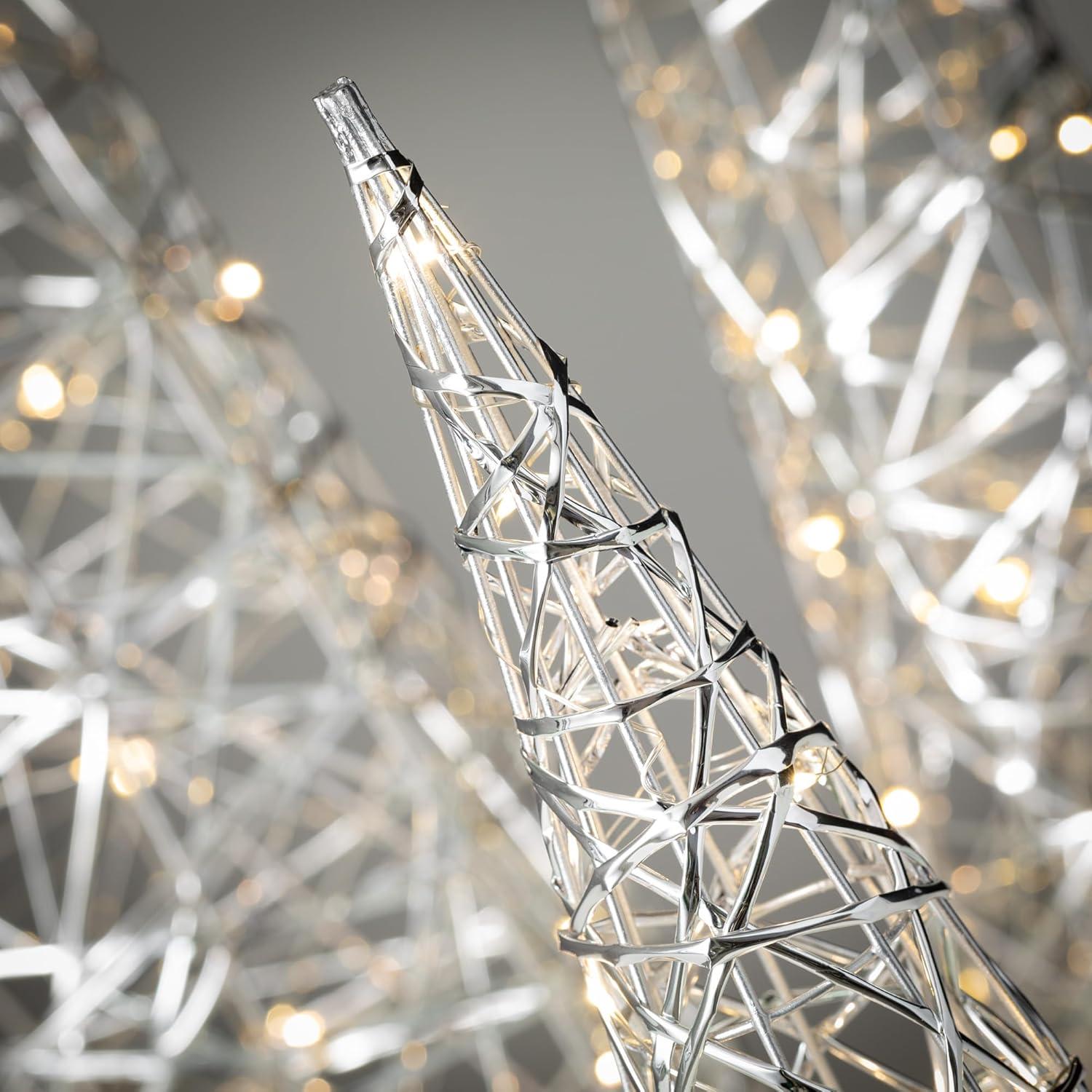 Made from high-quality metal in a sleek silver color, these lighted cones add a modern and festive touch to both indoor and outdoor Christmas decor.