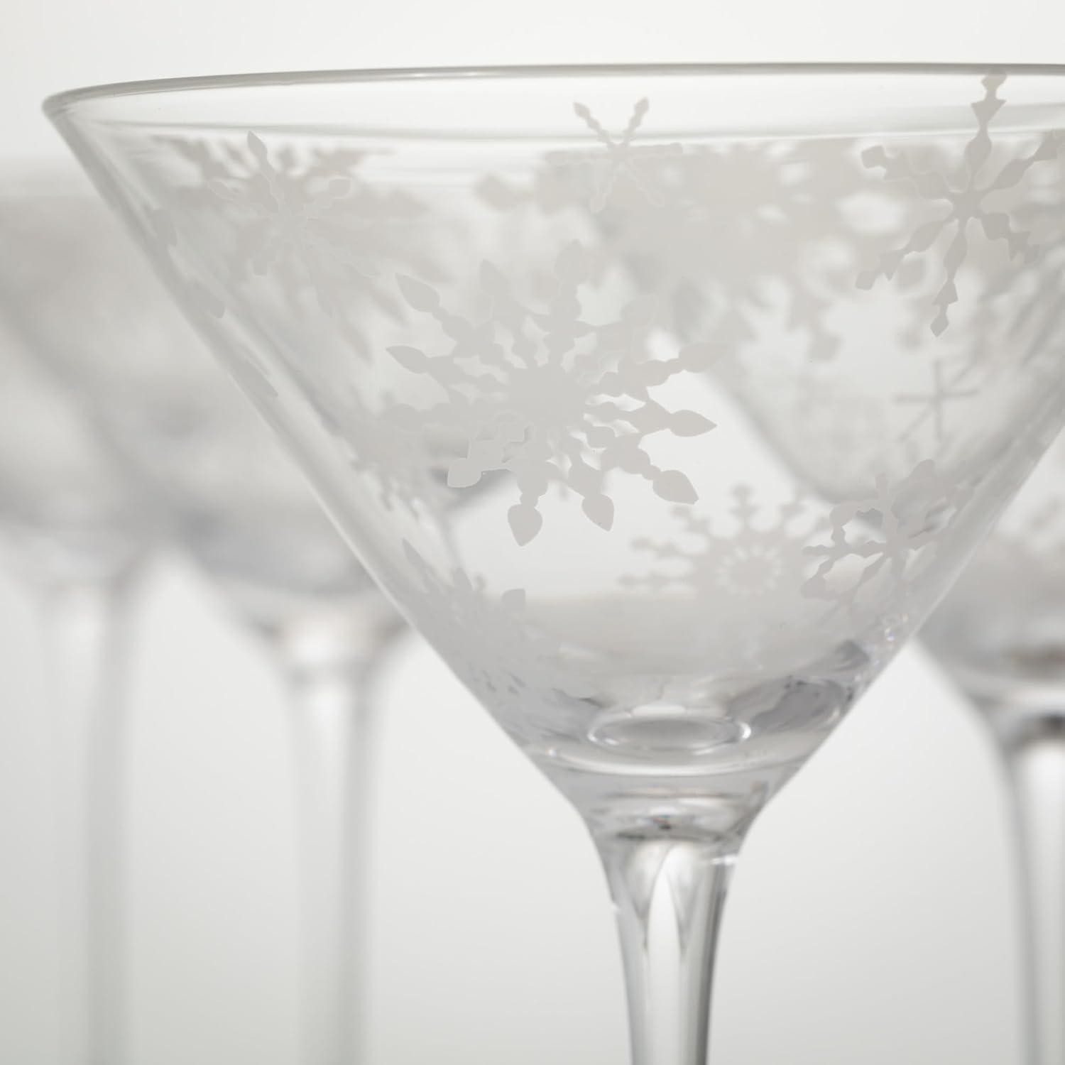 Crafted with Precision: These martini glasses are meticulously designed with delicate snowflake motifs, enhancing the holiday spirit with each sip.
